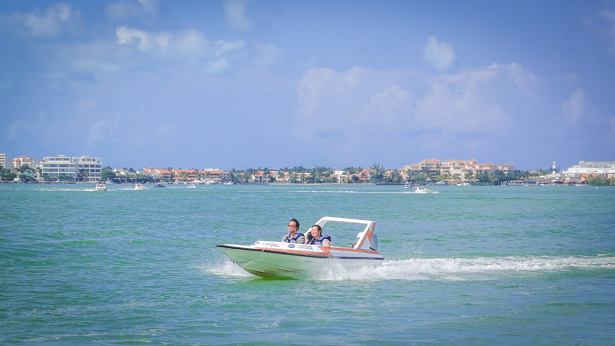 역시나 더운 날씨에 시원한 바람을 맞으며 보트를 운전하는 기분이 너무 좋다.