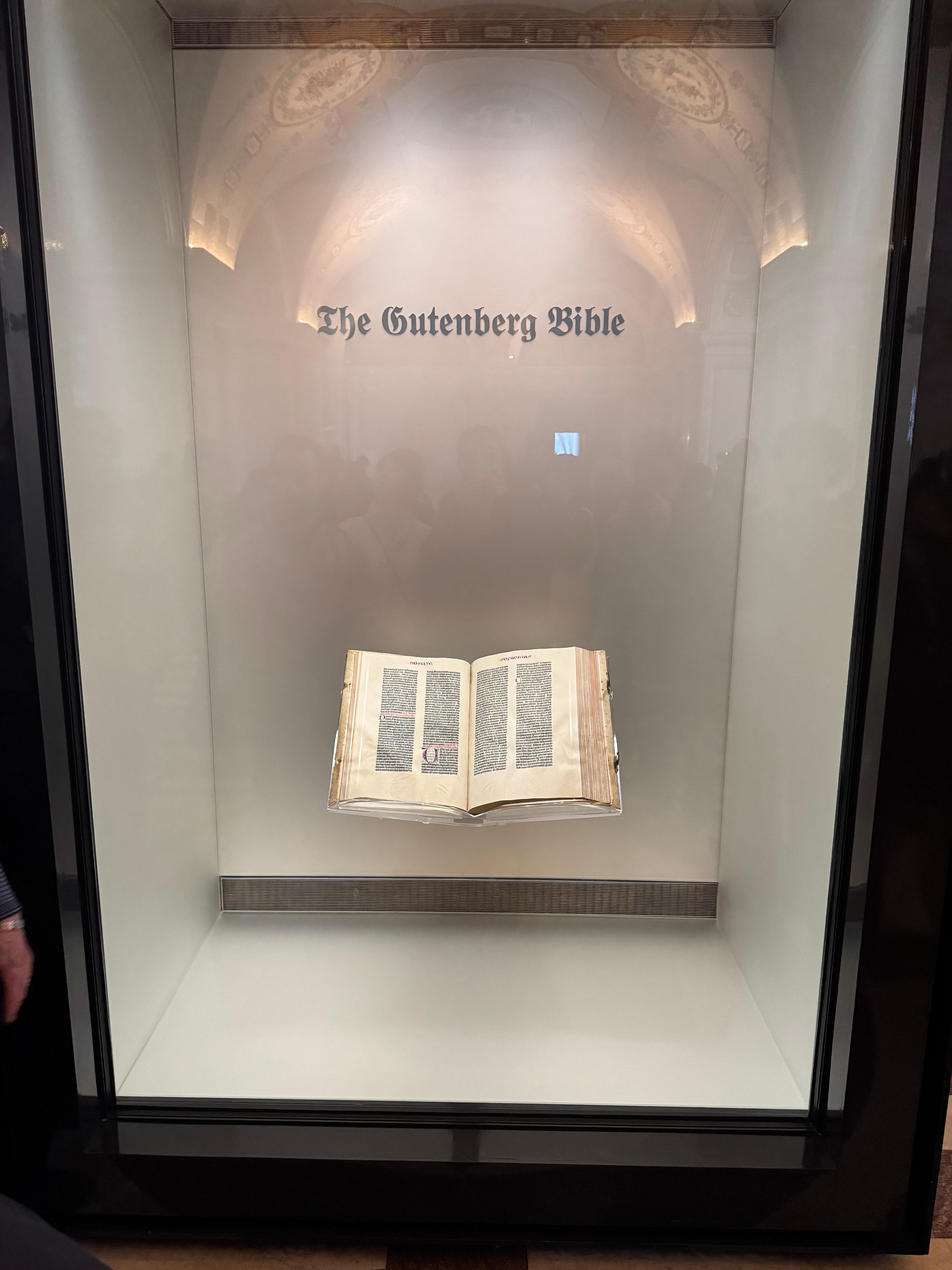 도서관 로비에는 구텐버그 성경 인쇄본이 전시 되어 있다.