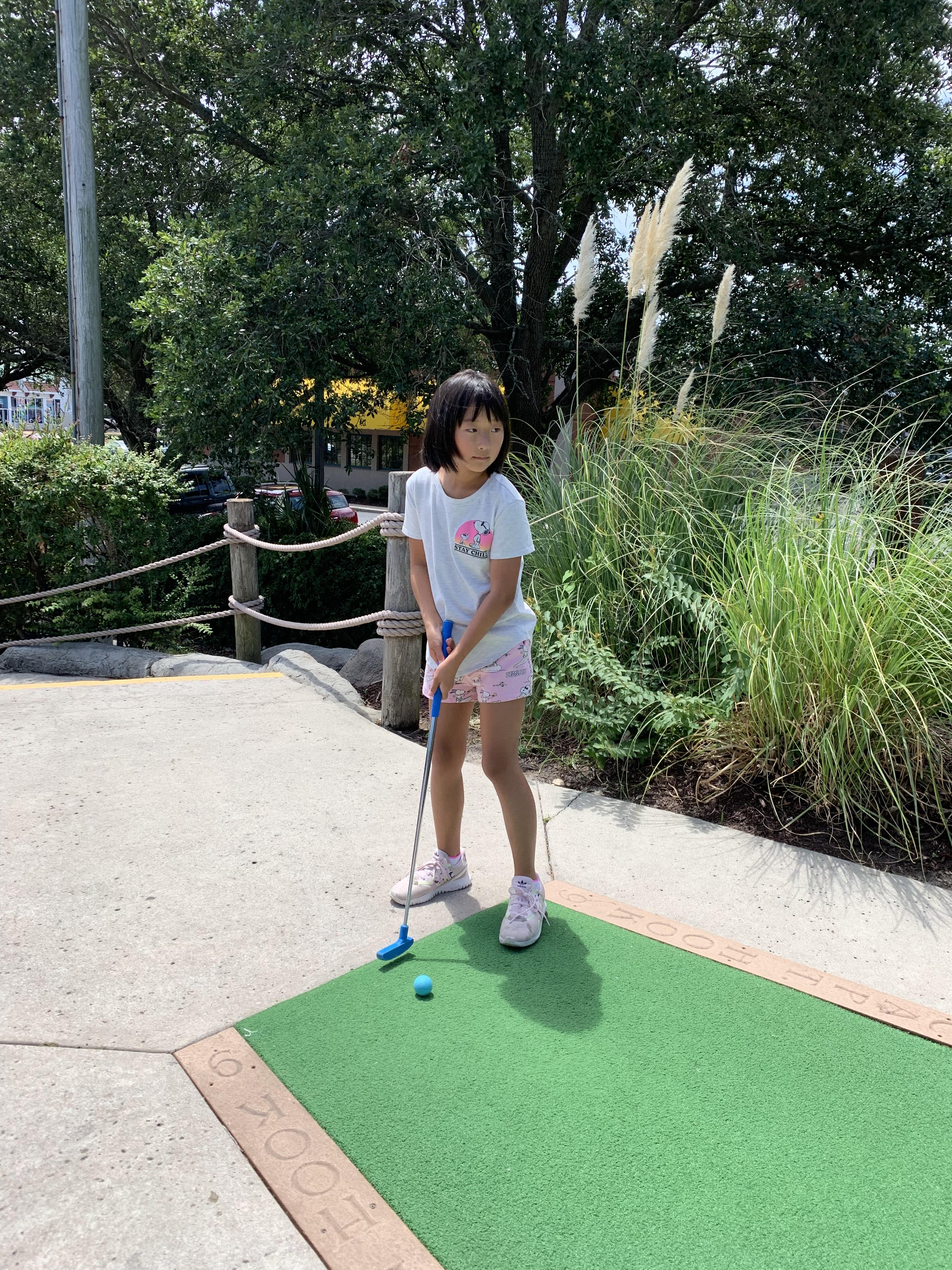 호텔 앞에 무료 Mini Golf가 있어서 한 번 해보더니 율이가 제대로 된 곳에서 해 보고 싶었나보다.