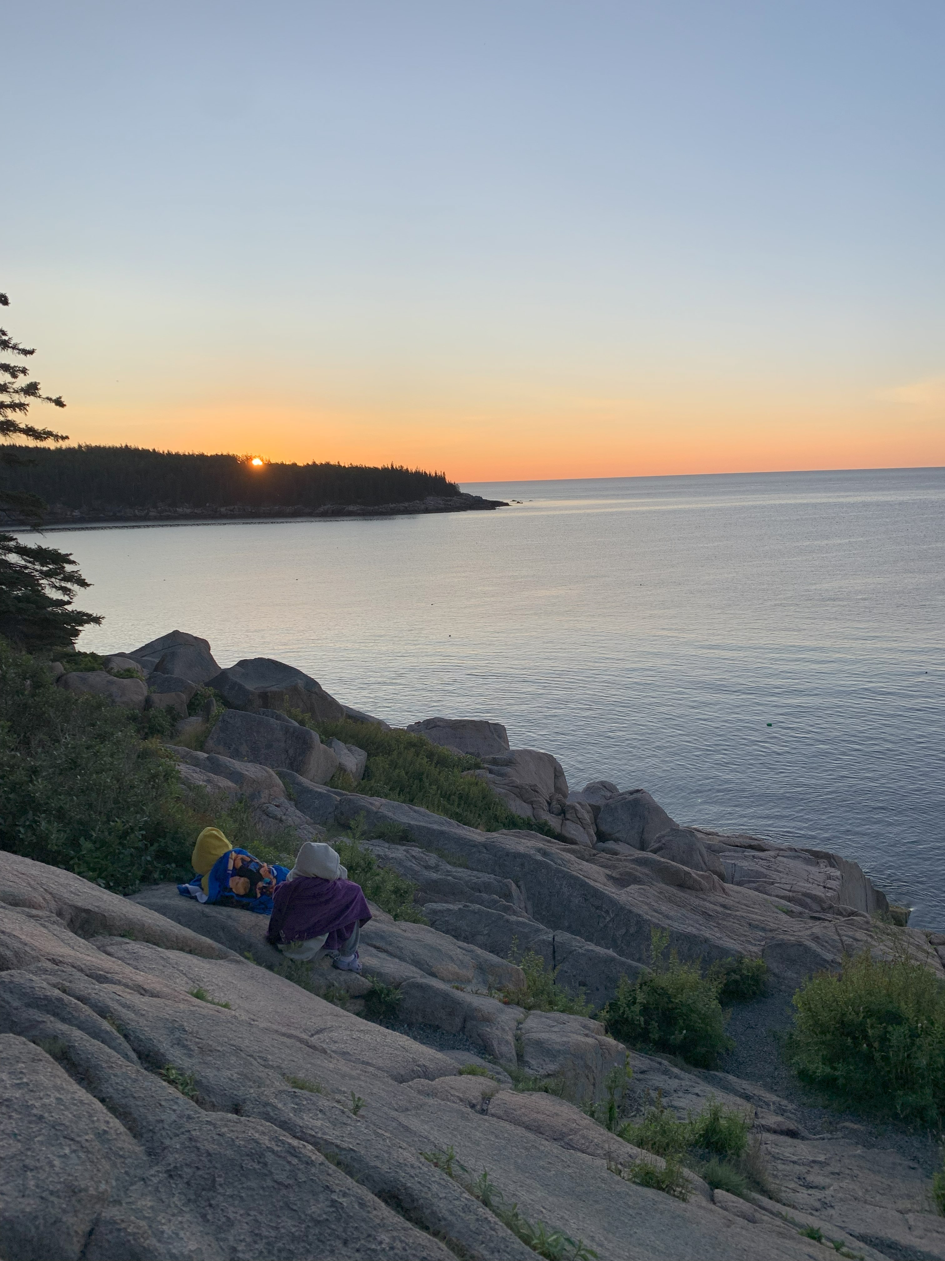 여기서는 Bay 넘어 산등성이 너머로 올라오는 태양을 볼 수 있었는데.. 아마도 Bay 건너편의 Thunder Hole 있는 해안 도로에서는 일출을 직접 볼 수 있지 않을 까 하는 생각이 들었다.