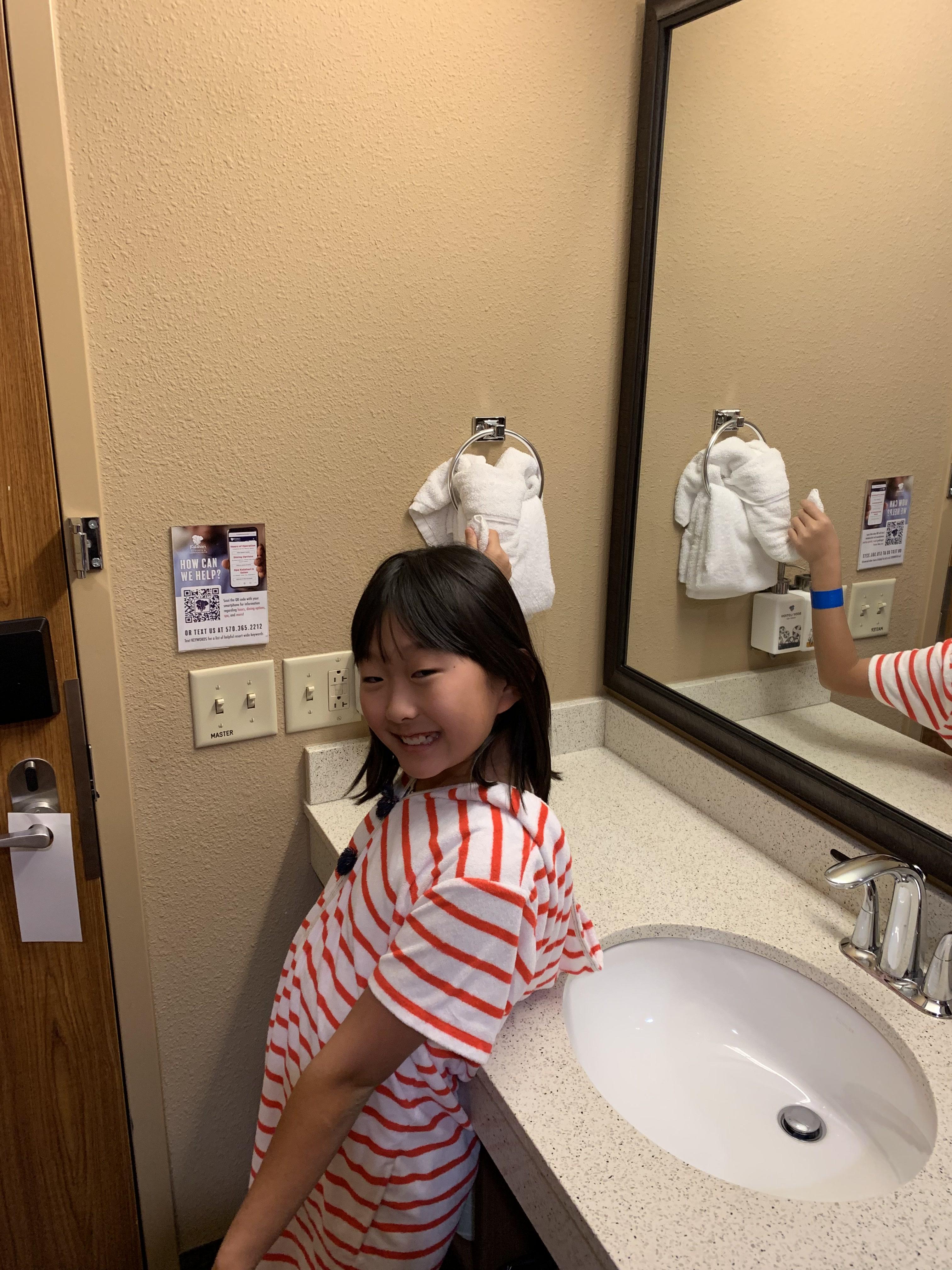늘 보면 즐거운 코끼리 모양으로 걸어놓은 수건.