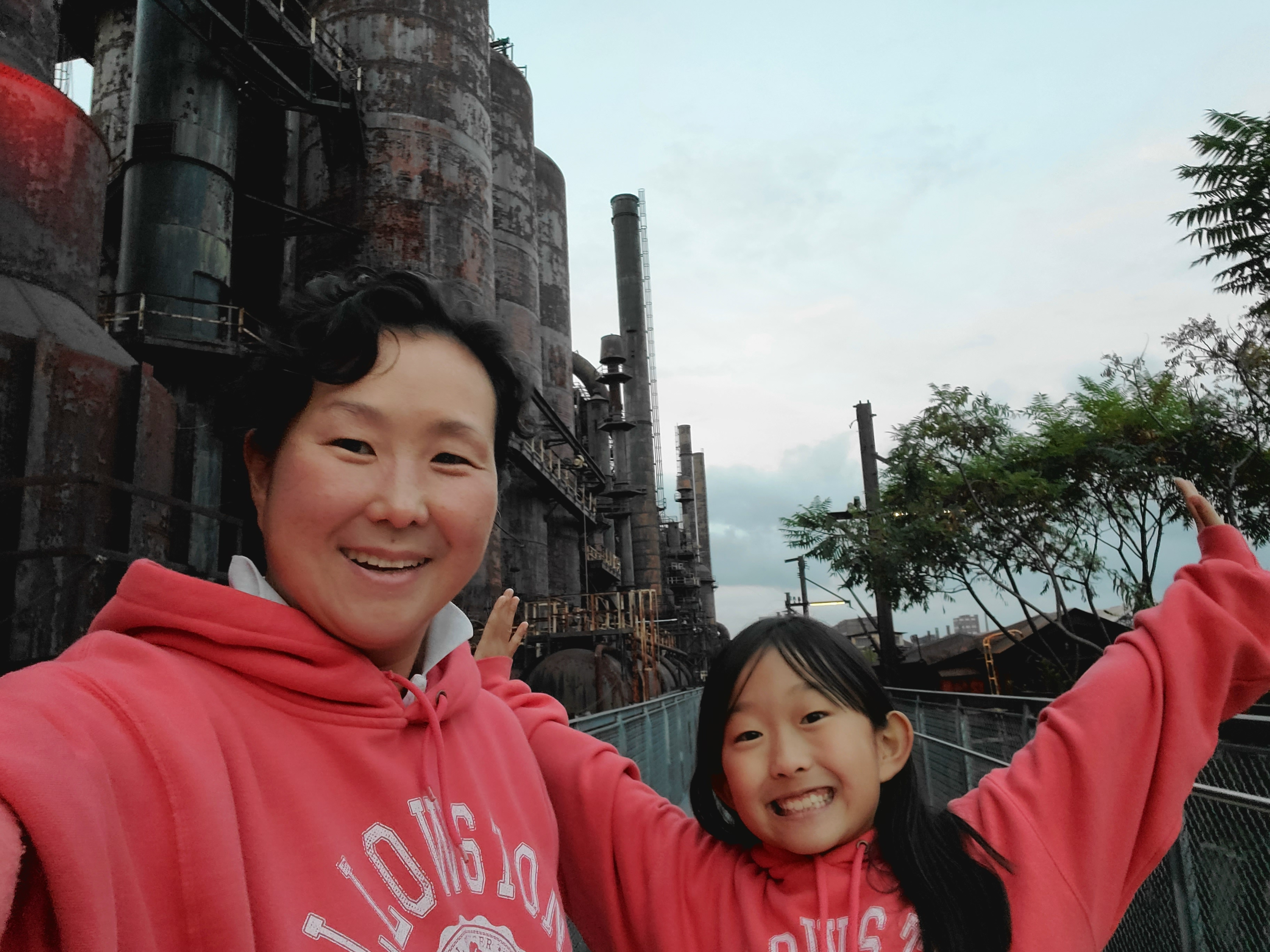 공장 구경하는 입구에서 사진 찍는데 젊은 친구들이 갑자기 끼어 들어서 사진을 찍으면서 한 참 웃었다.