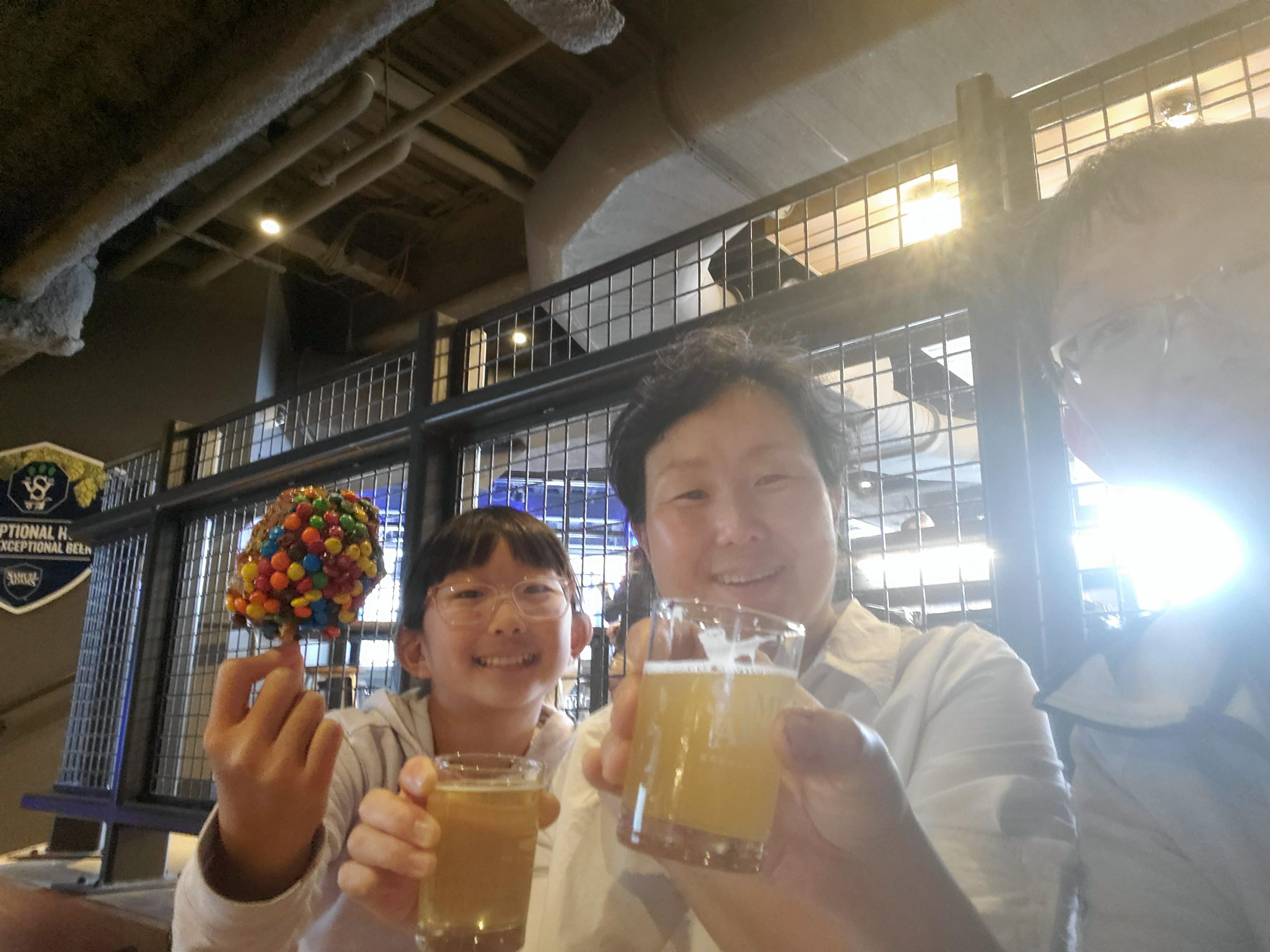 우리는 관중석처럼 되어 있는 곳에서 맥주를 즐겼다.