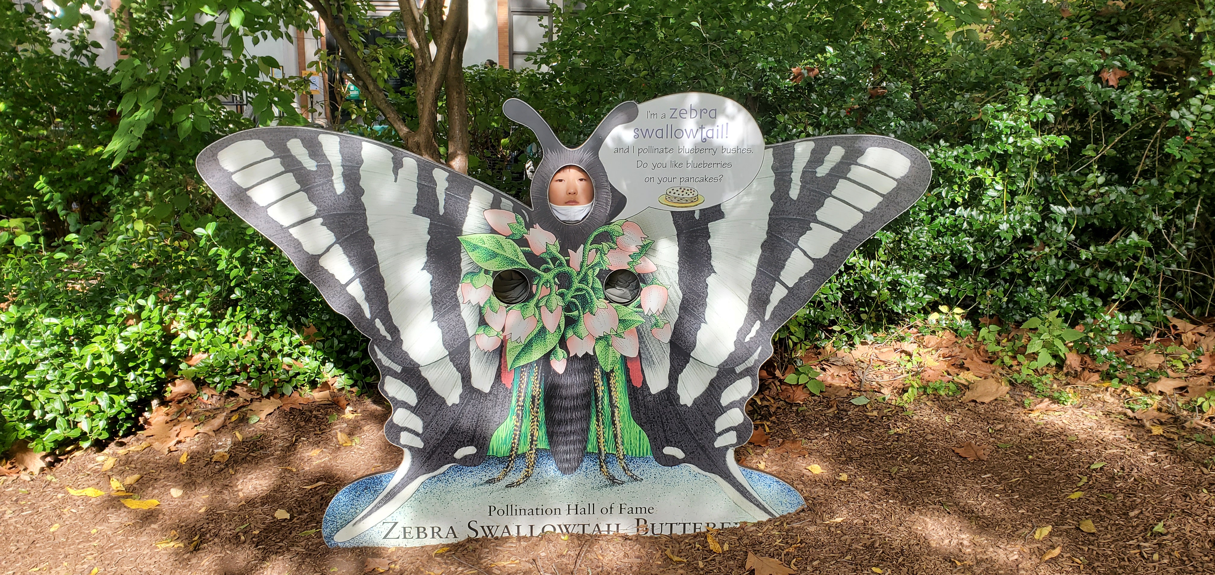 Butterfly Garden을 들어갔는데.. 한 참을 보다보니 집 사람 옷에 나비가 날아와 앉았다.