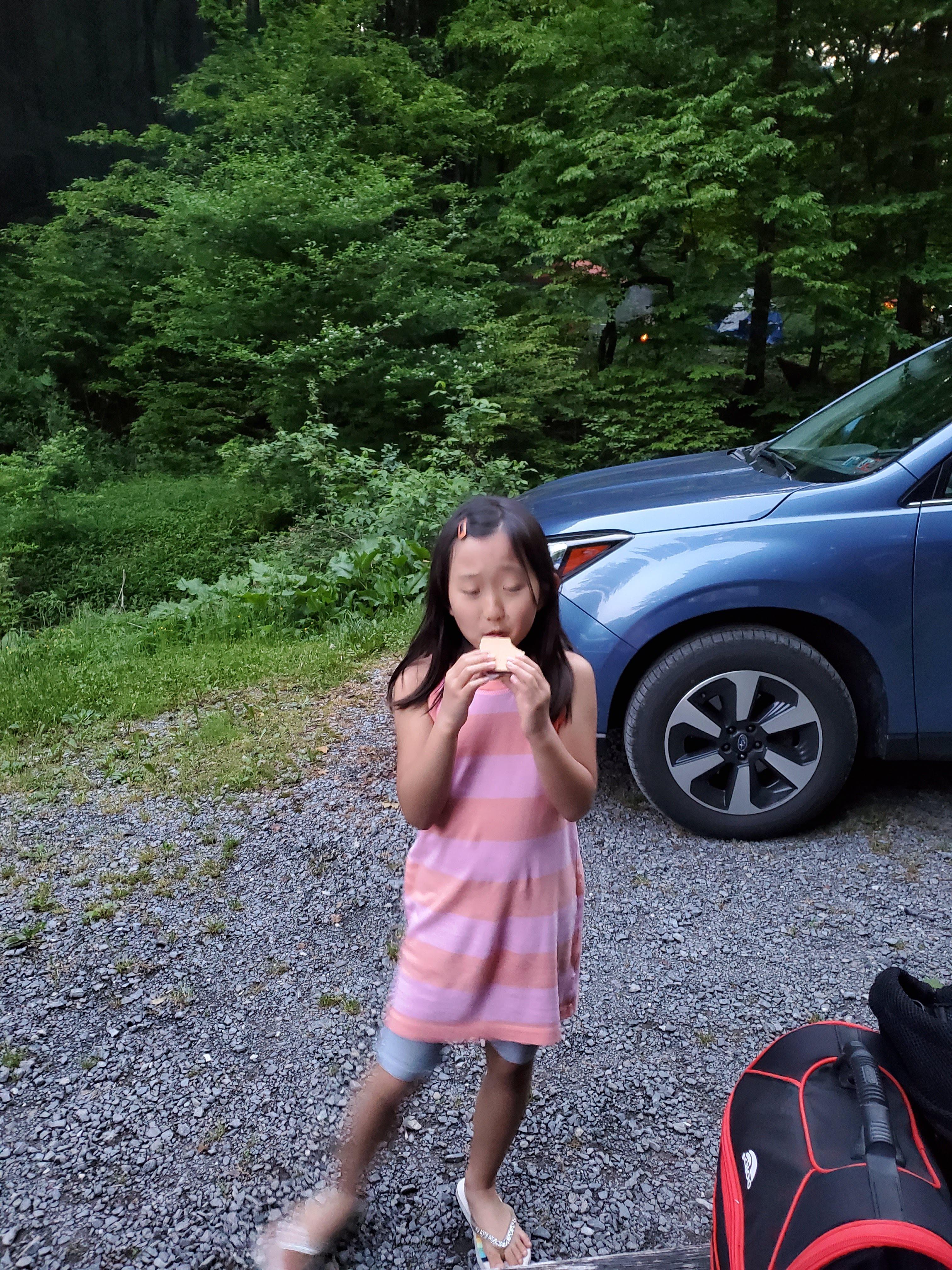 난생 처음 제대로 된 S'more ( 마시멜로 + 허쉬초콜릿 + 크래커 ) 를 먹어보니 너무 기쁜 율이..