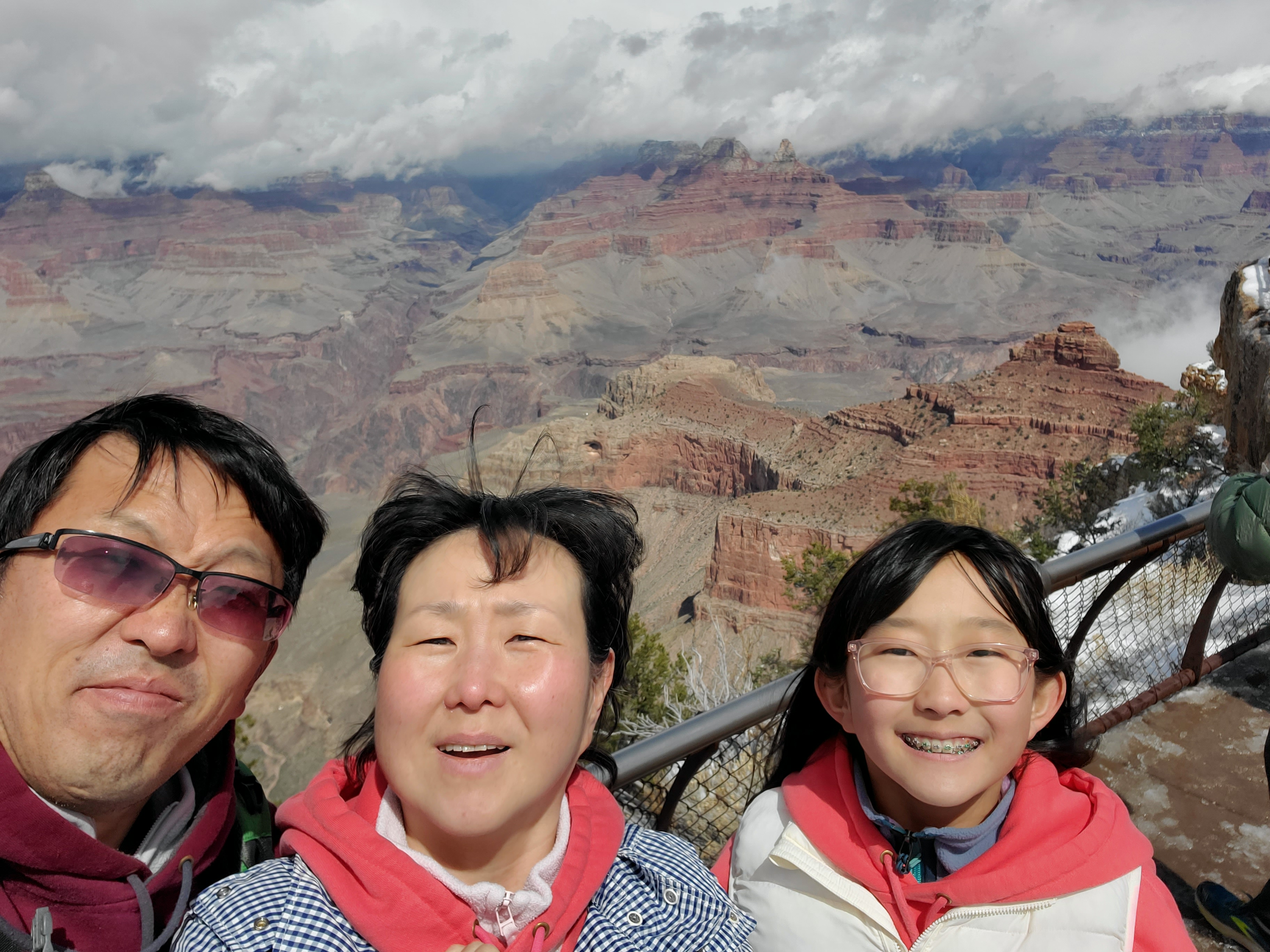 가족들 모두 일어나기를 기다려 Canyon으로 들어가는데.. 아침에 그쳤던 눈이 다시 오락가락 한다.