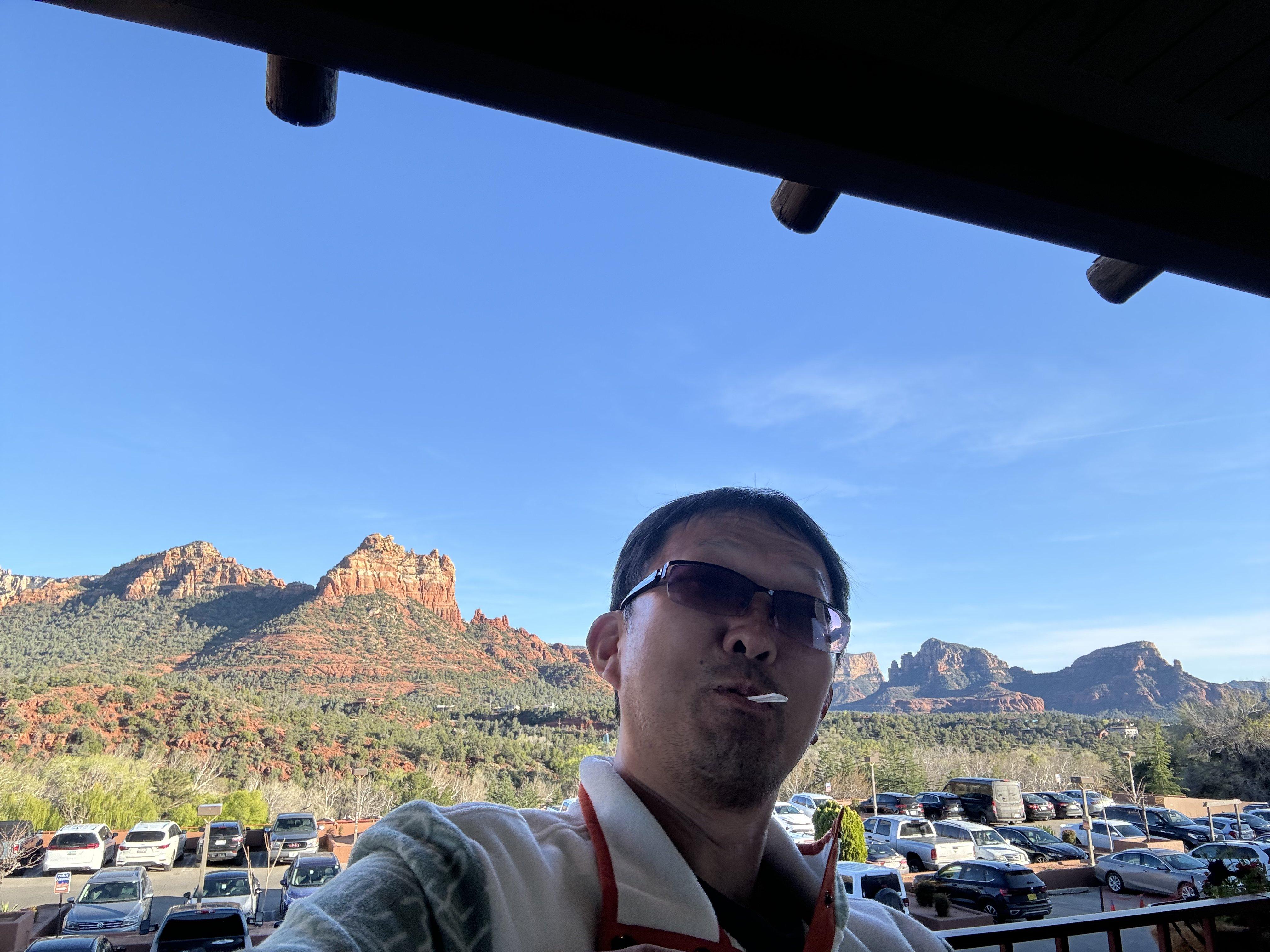 새벽에 일어나 테라스에 나와보니 방에서 Bell Rock 주변 산들이 보인다.