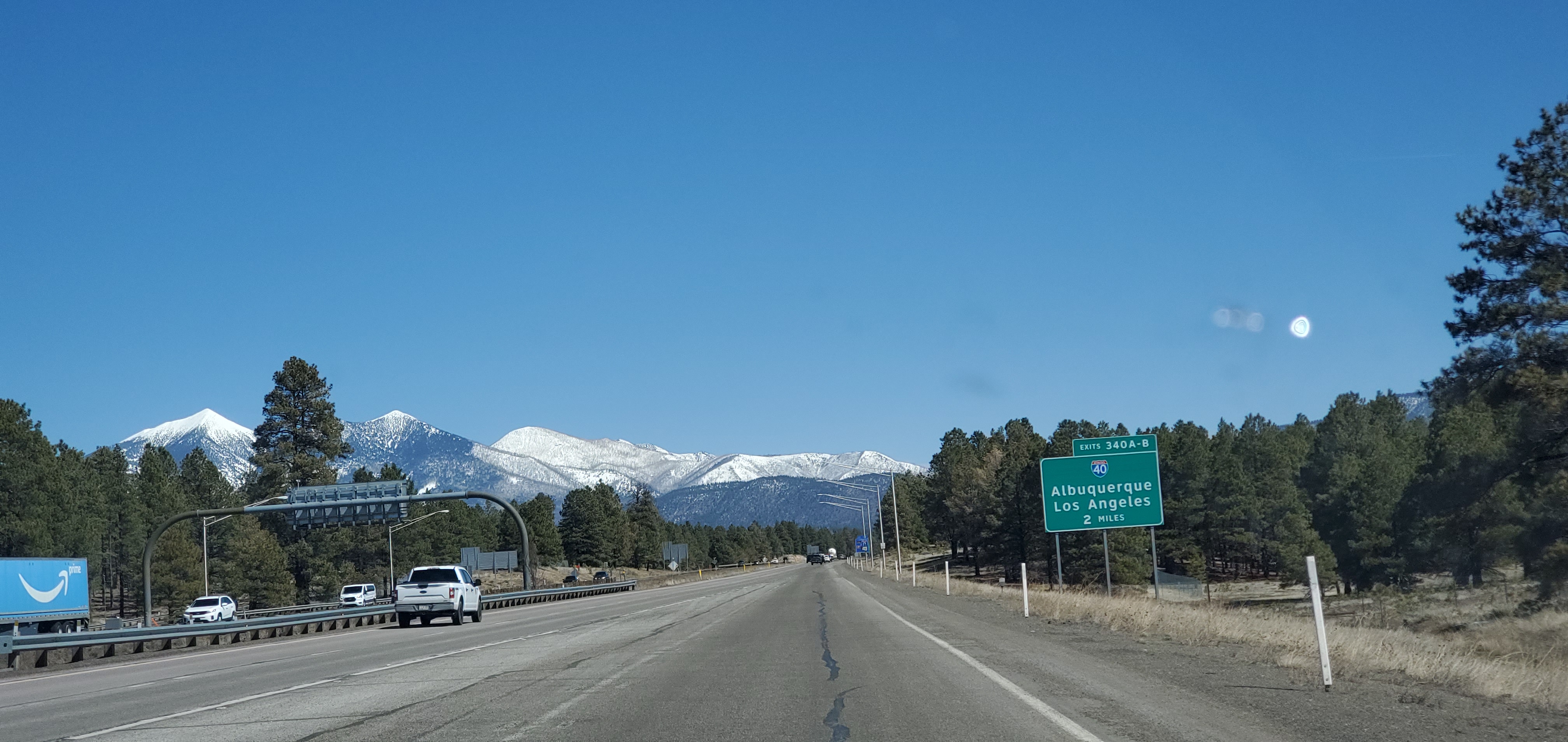 그렇게 세도나 지역과 작별을 고하고 큰 도로로 나오니 눈 덮인 산이 우리를 반긴다.