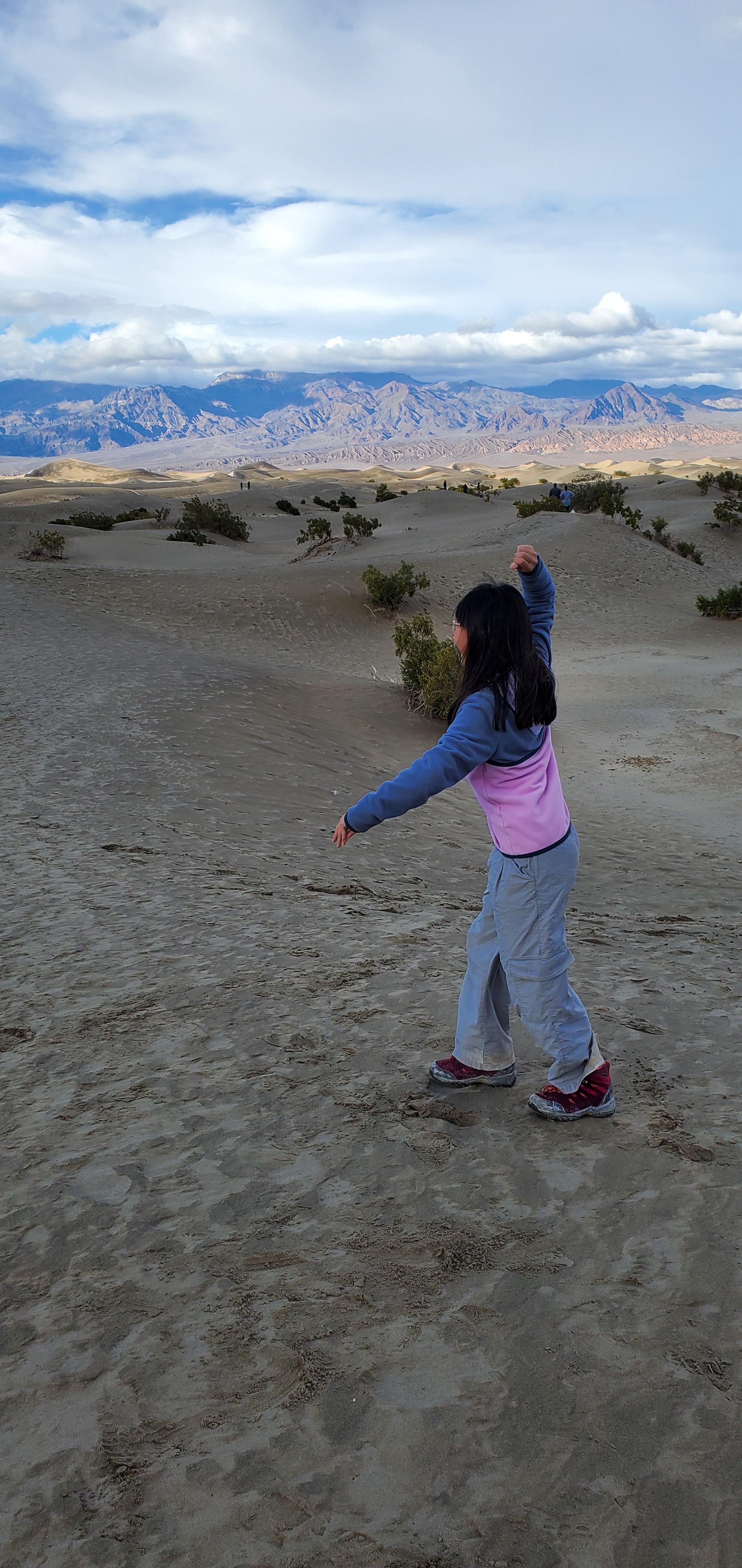 비지터 센터에서 율이의 Junior Ranger 선서를 하고 Death Valley의 마지막 행선지인 Mesquite Flat Sand dunes로 향했다.